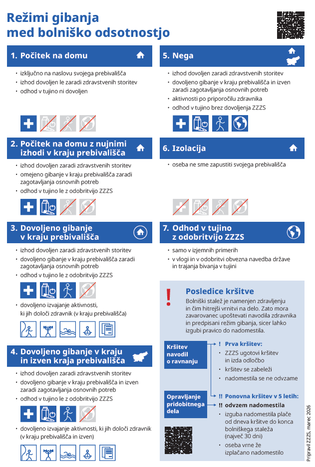 Bolniški stalež je namenjen zdravljenju in čim hitrejši vrnitvi na delo, zato mora zavarovanec upoštevati navodila zdravnika in predpisani režim gibanja.